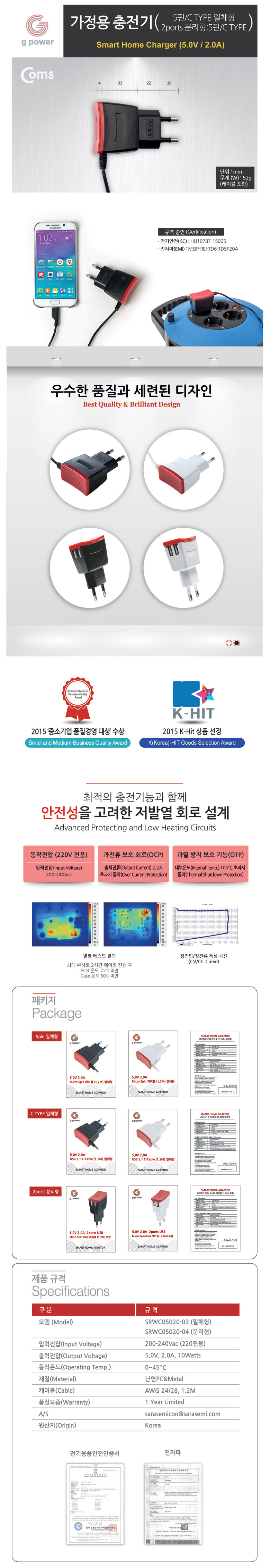 ÁöÆÄ¿ö ÀÏüÇü °¡Á¤¿ë ÃæÀü±â - ¡ÚUSB CŸÀÔ (2A)