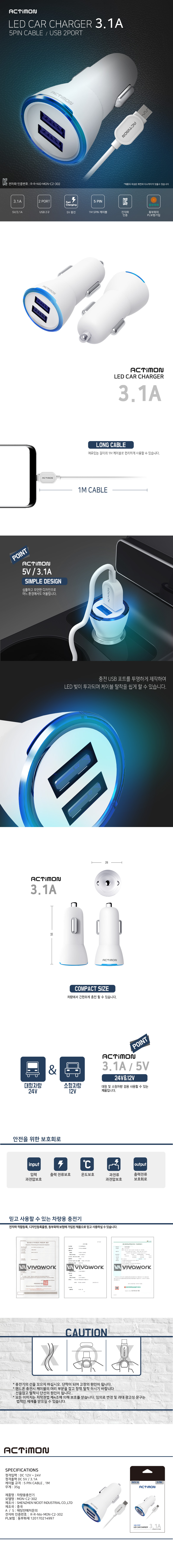 [¾×Ƽ¸ó] LED ºÐ¸®Çü 2Æ÷Æ® Â÷·®¿ëÃæÀü±â MON-C2-302 - ¸¶ÀÌÅ©·Î 5ÇÉ (3.1A)